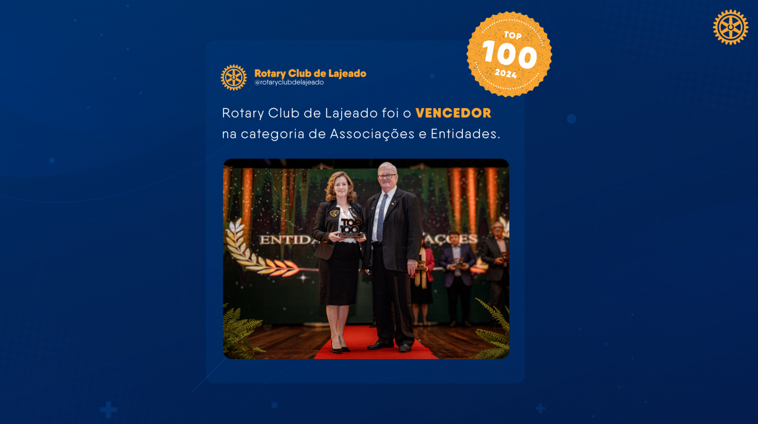 O Rotary Club de Lajeado brilhou no Prêmio TOP 100, sendo escolhido como o Vencedor na categoria de Associações e Entidades. Este prêmio, que destaca as marcas e personalidades mais influentes do Vale do Taquari, aconteceu na última sexta-feira, 27 de setembro.